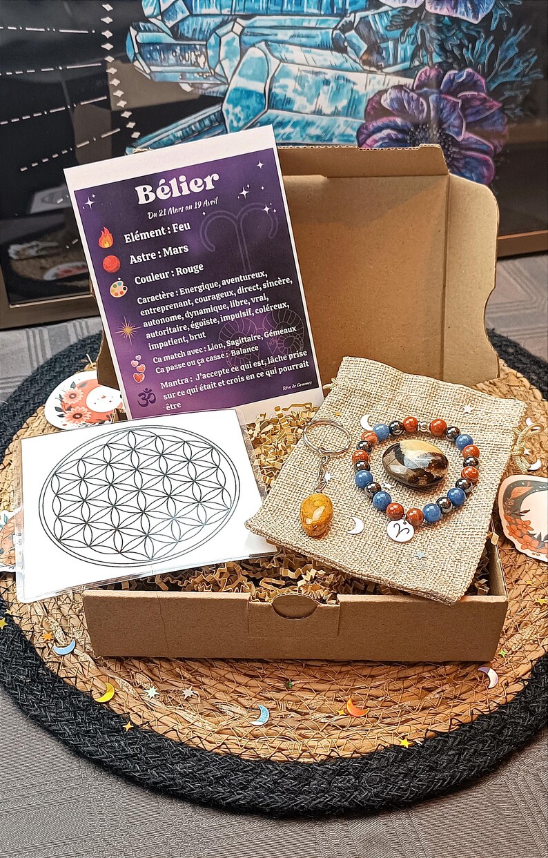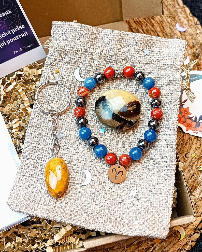 Box Astrologie Bélier (signe du zodiaque, coffret, lithothérapie, idée cadeaux, bracelet, pierres naturelles)