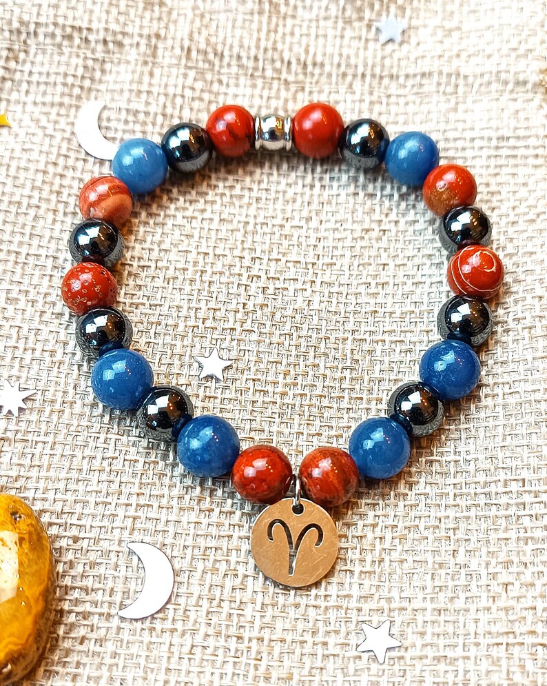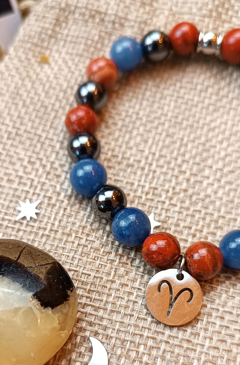 * Un bracelet composé de 3 Pierres différentes dont la synergie est adaptée à l’essence profonde du signe du Bélier ainsi que d’une jolie pampille estampillée de son symbole astrologique :