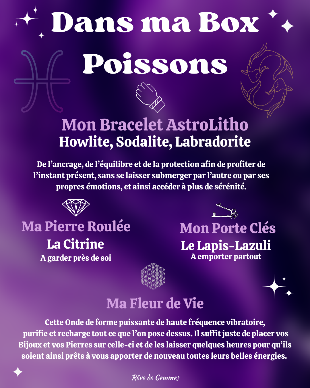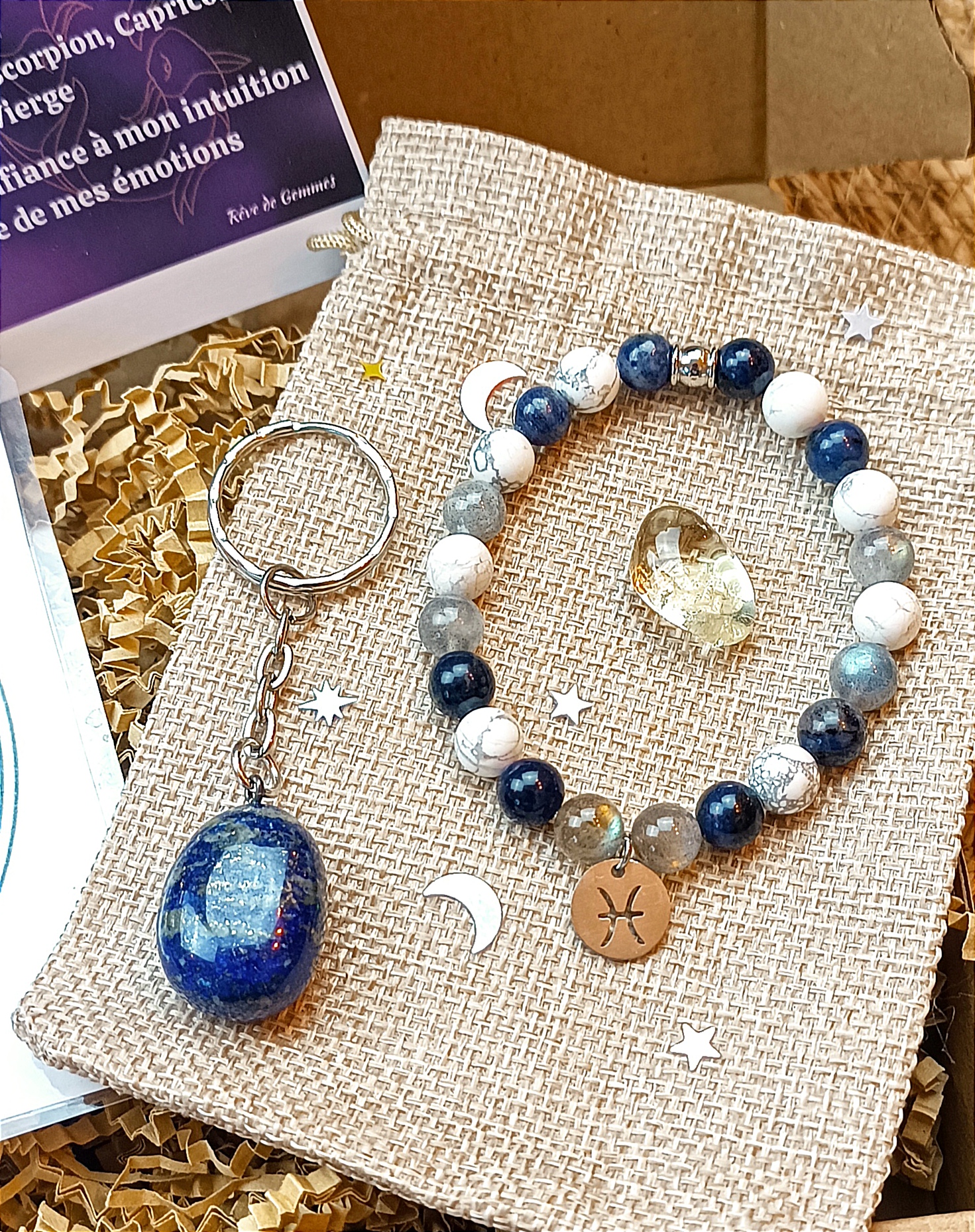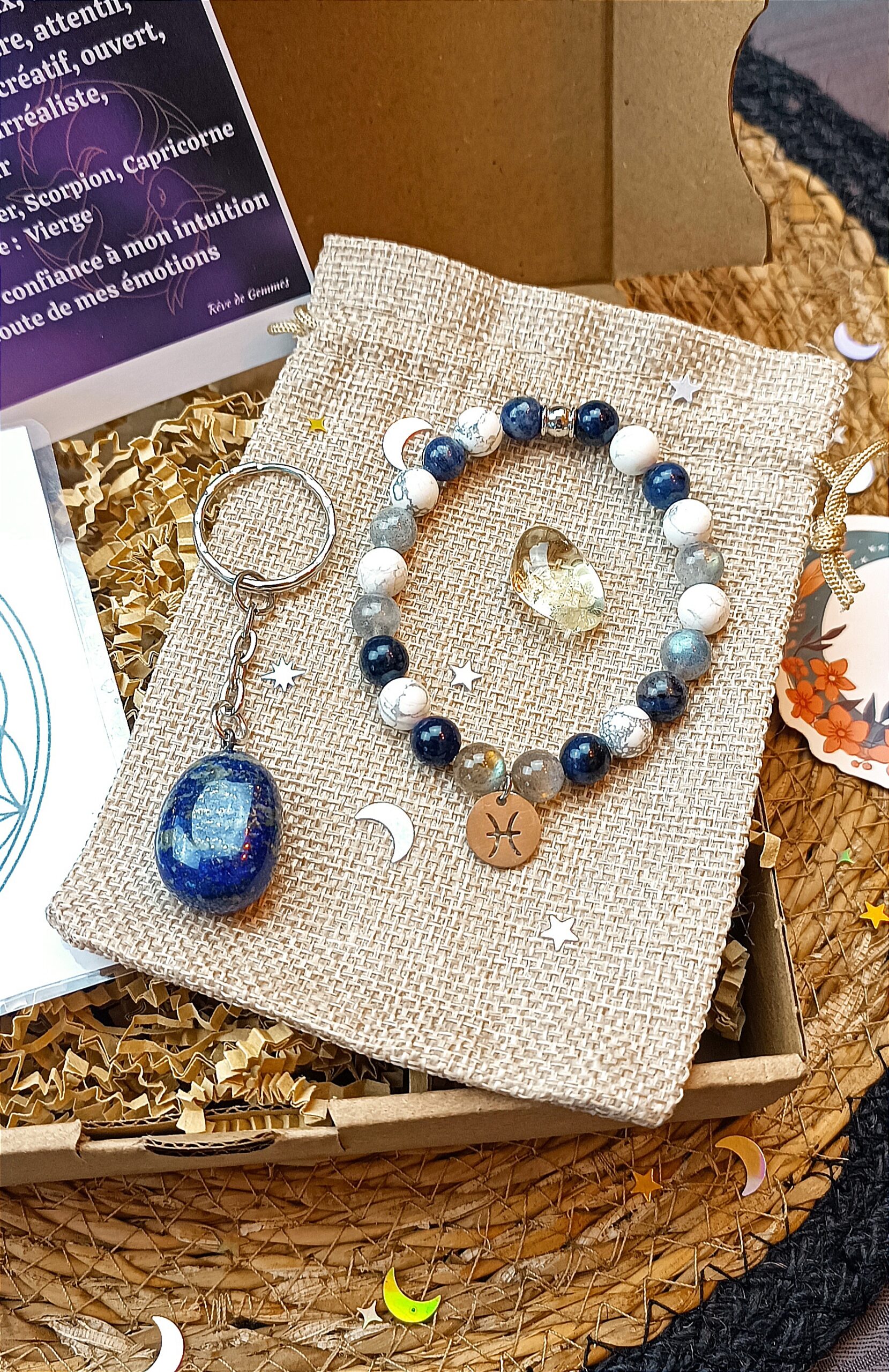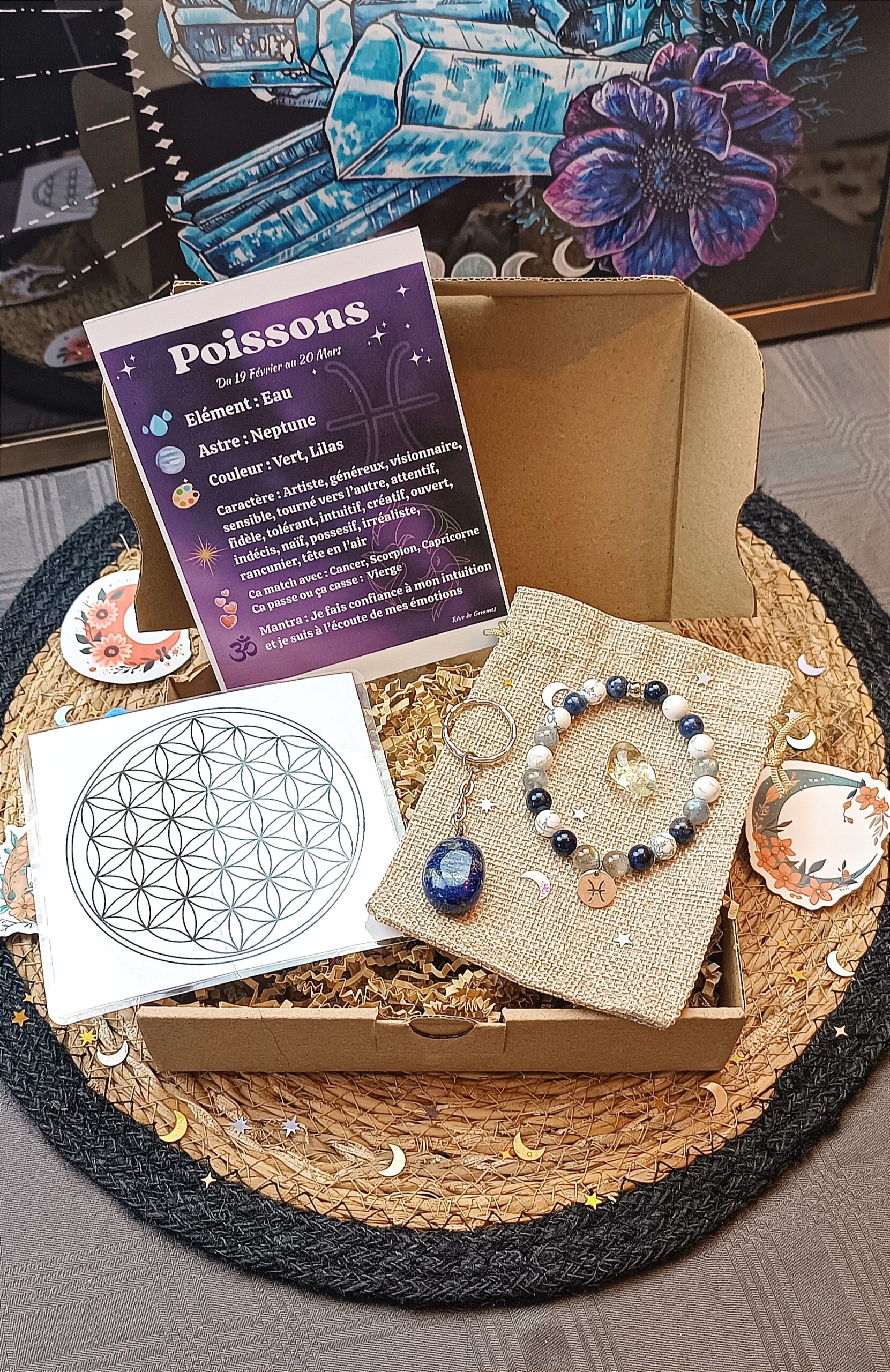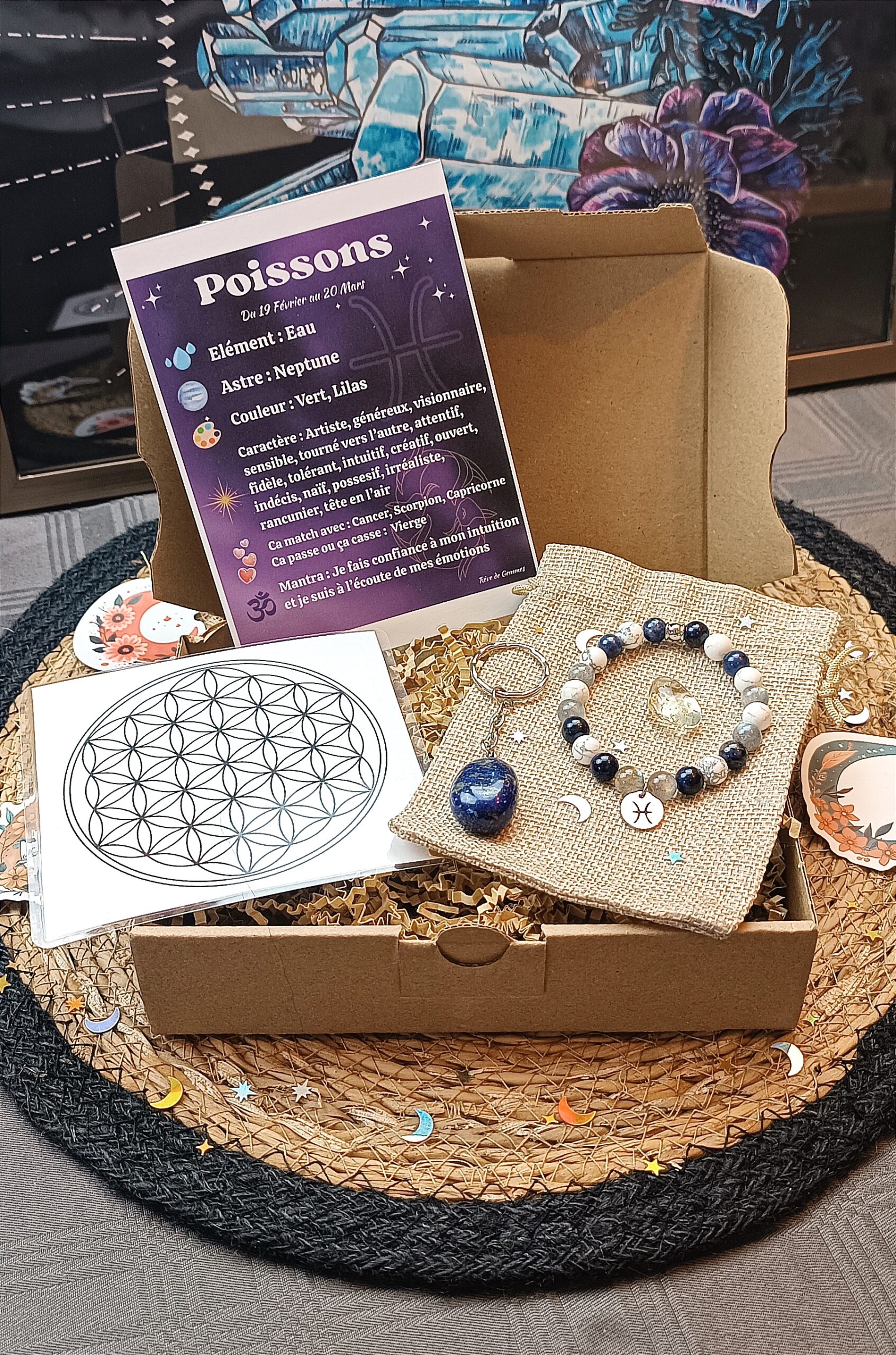 Box Astrologie Poissons( signe du zodiaque, coffret, lithothérapie, idée cadeaux, bracelet, pierres naturelles )