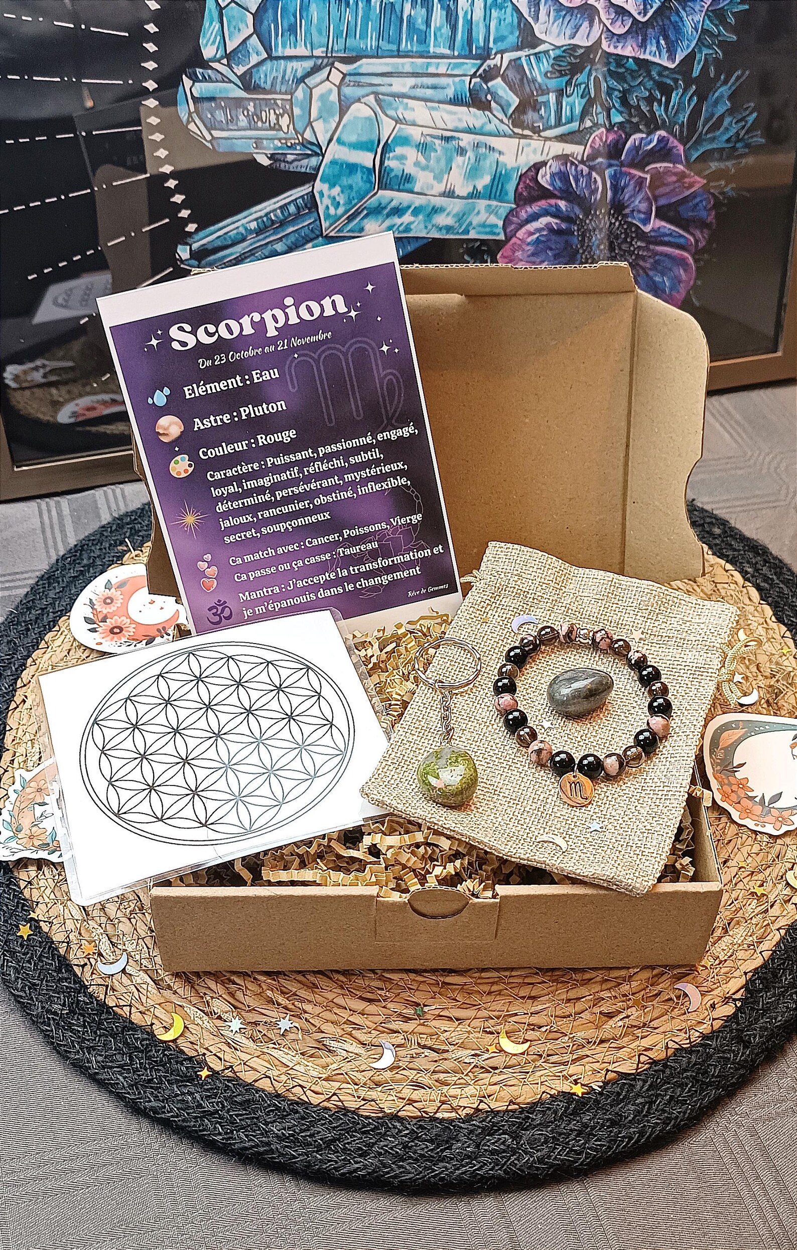 Box Astrologie Scorpion ( signe du zodiaque, coffret, lithothérapie, idée cadeaux, bracelet, pierres naturelles )