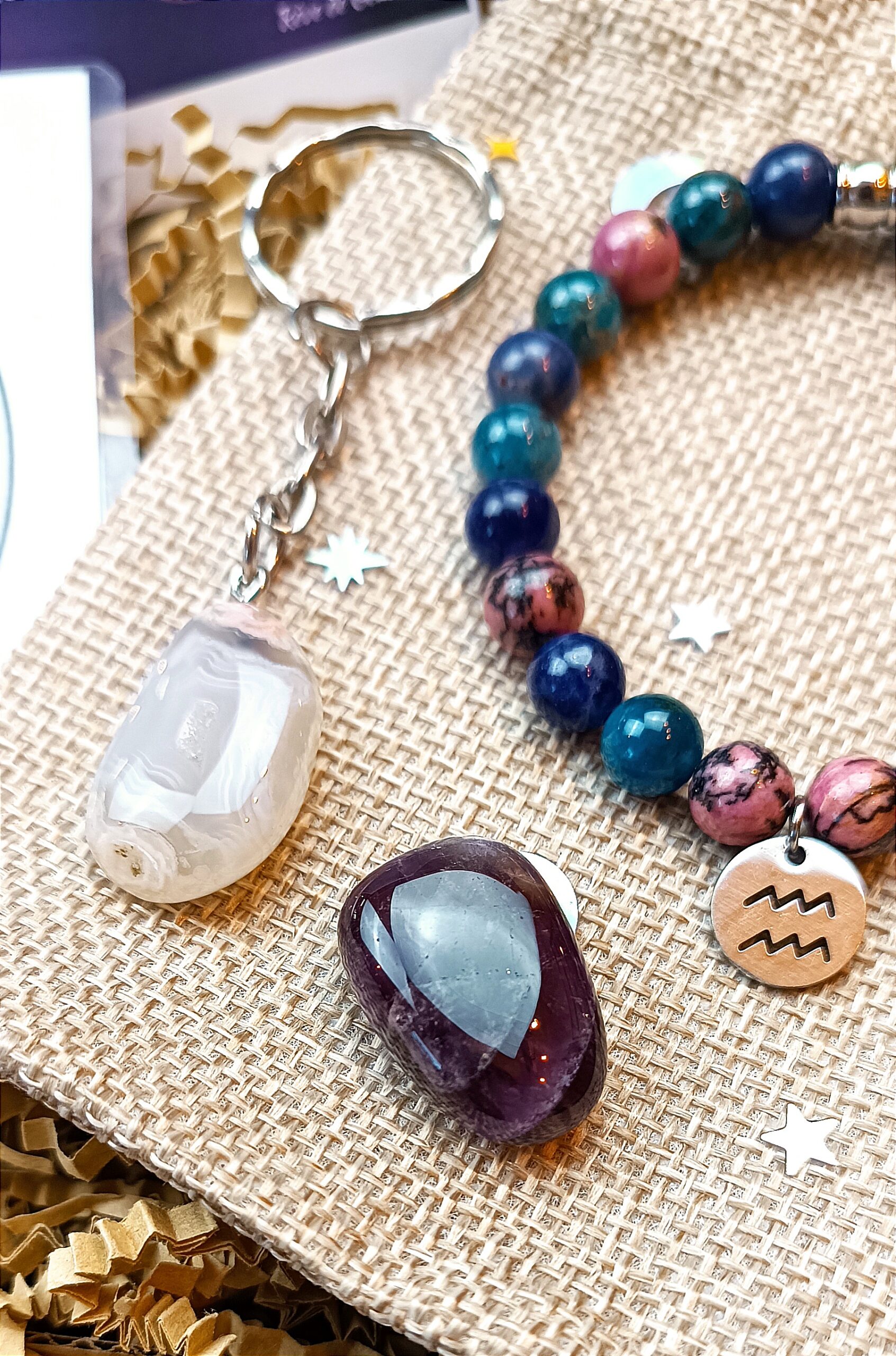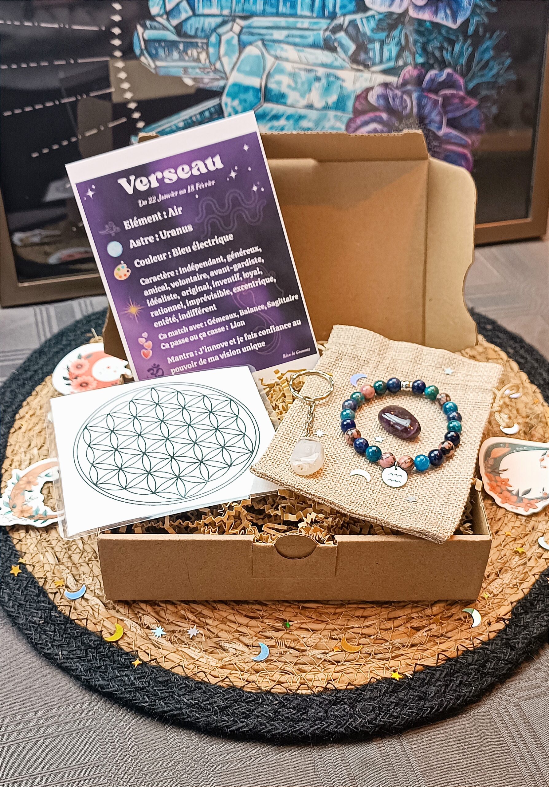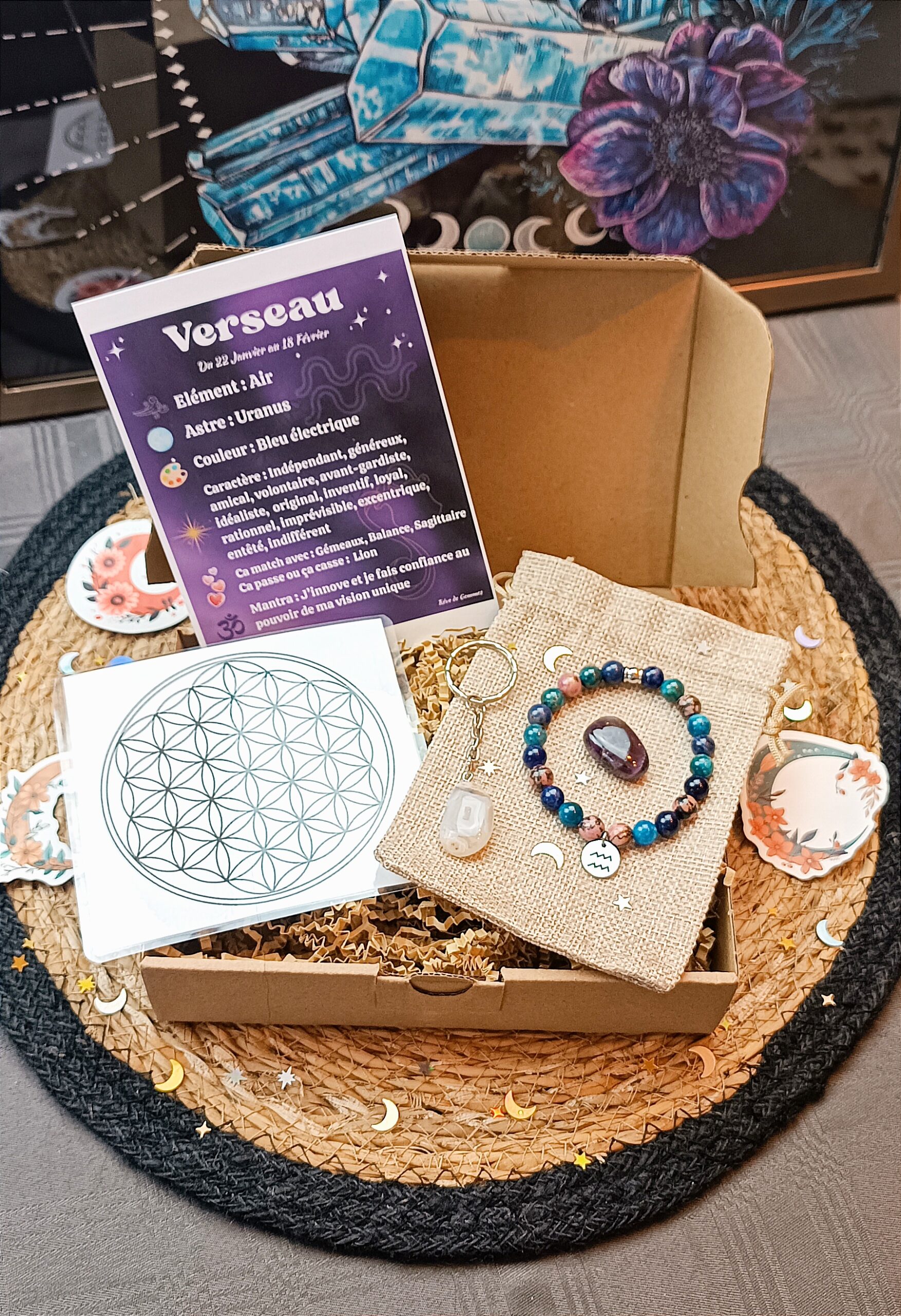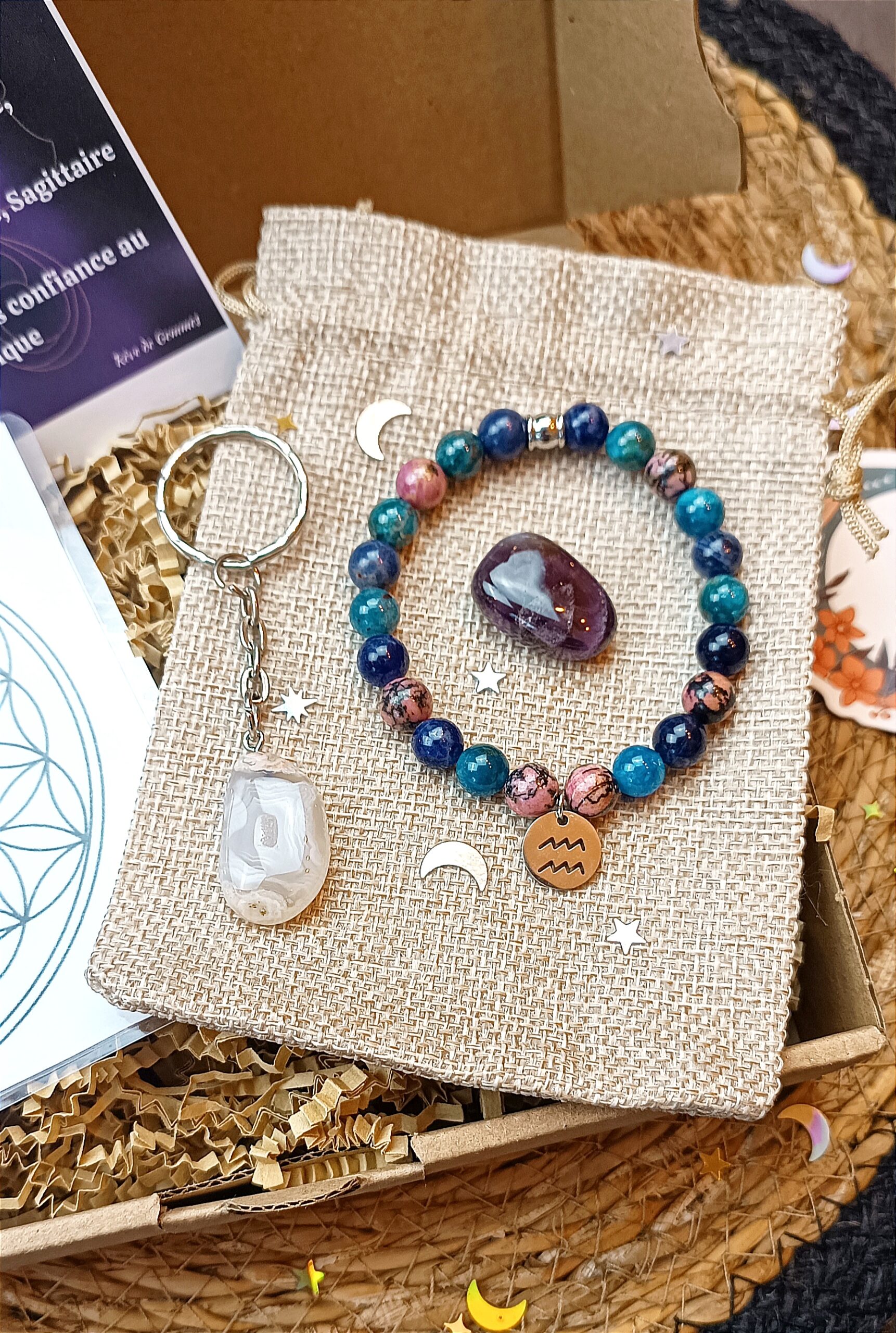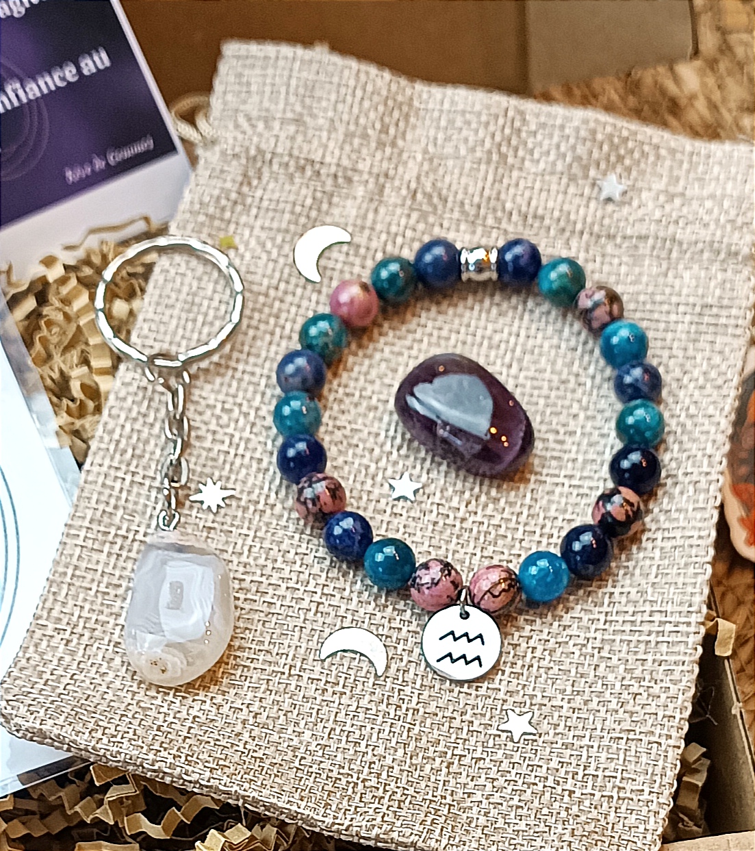 Box Astrologie Verseau ( signe du zodiaque, coffret, lithothérapie, idée cadeaux, bracelet, pierres naturelles )