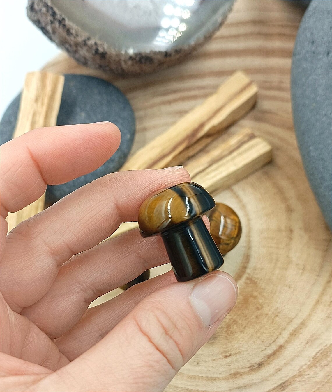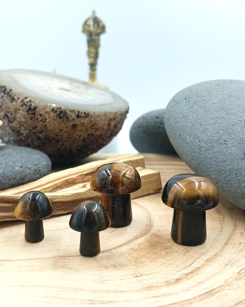 Matériaux : pierre naturelle, Oeil de Tigre, Champignon