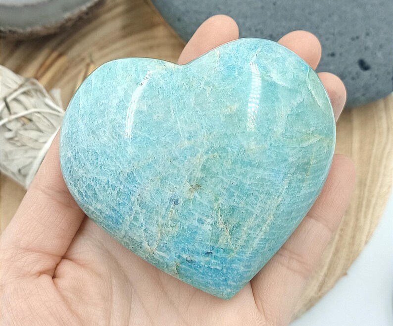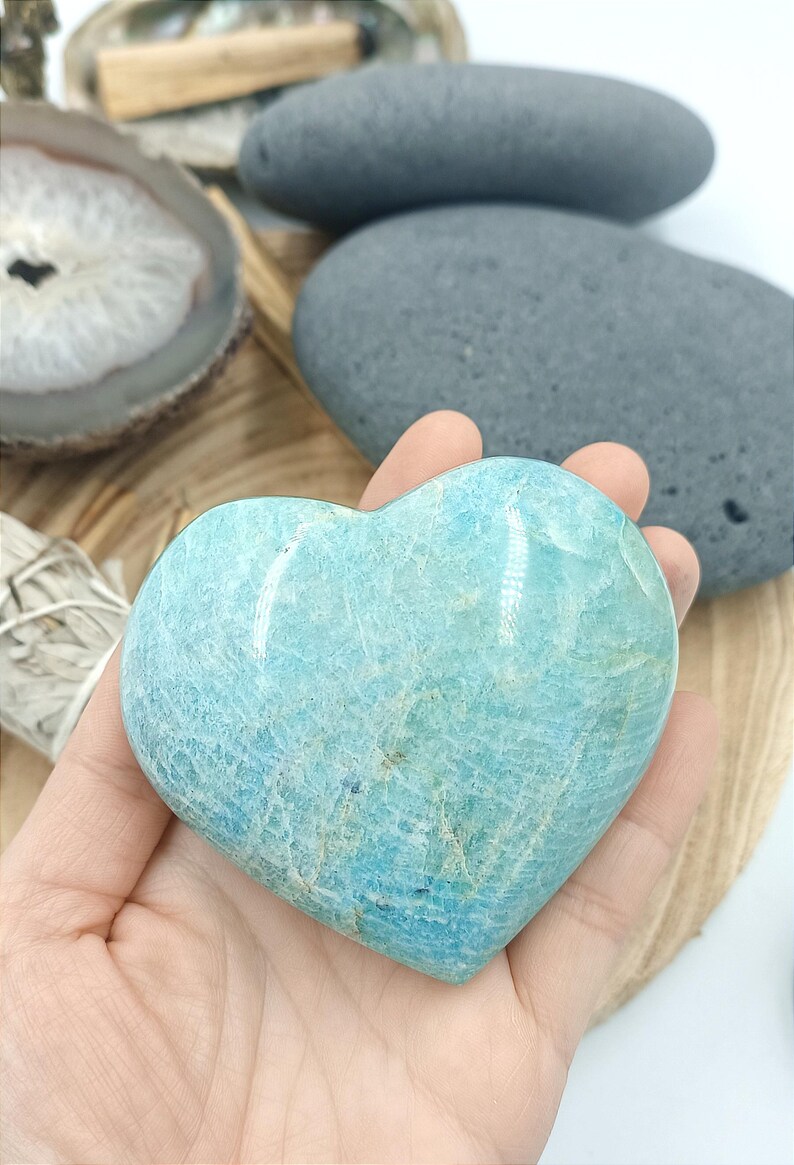 Matériaux : pierre naturelle, polie, amazonite, coeur