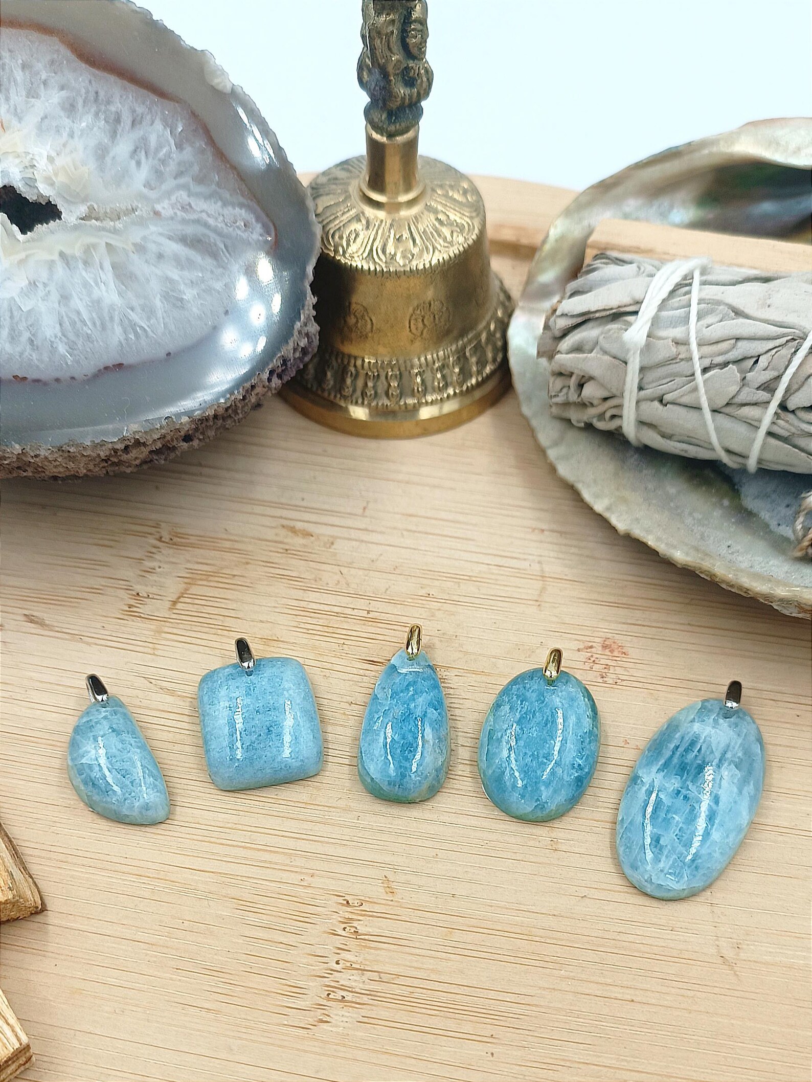 Pendentifs en Aigue-marine de super qualité, taillés main ( pierre naturelle, angoisses, communication, amour, lithothérapie, collier )
