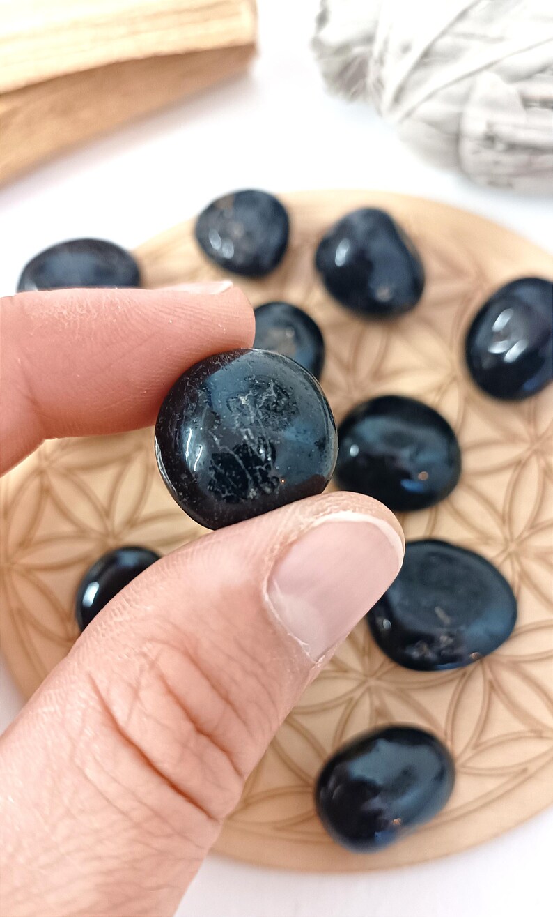 Ces pierres roulées en Tourmaline noire sont des pierres polies avec quelques stries visibles.