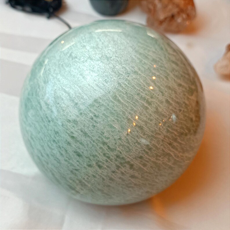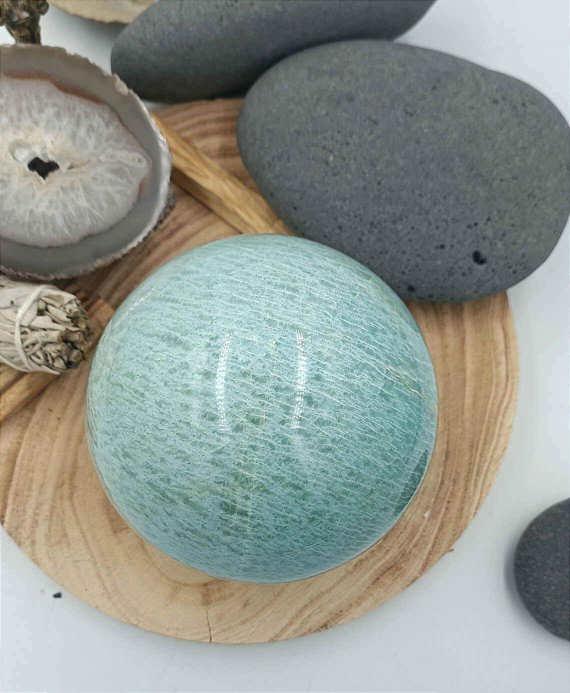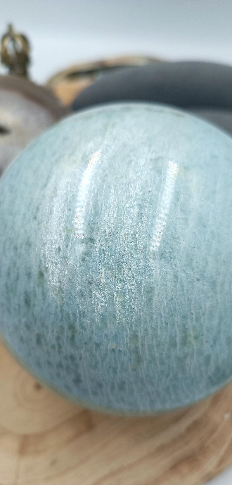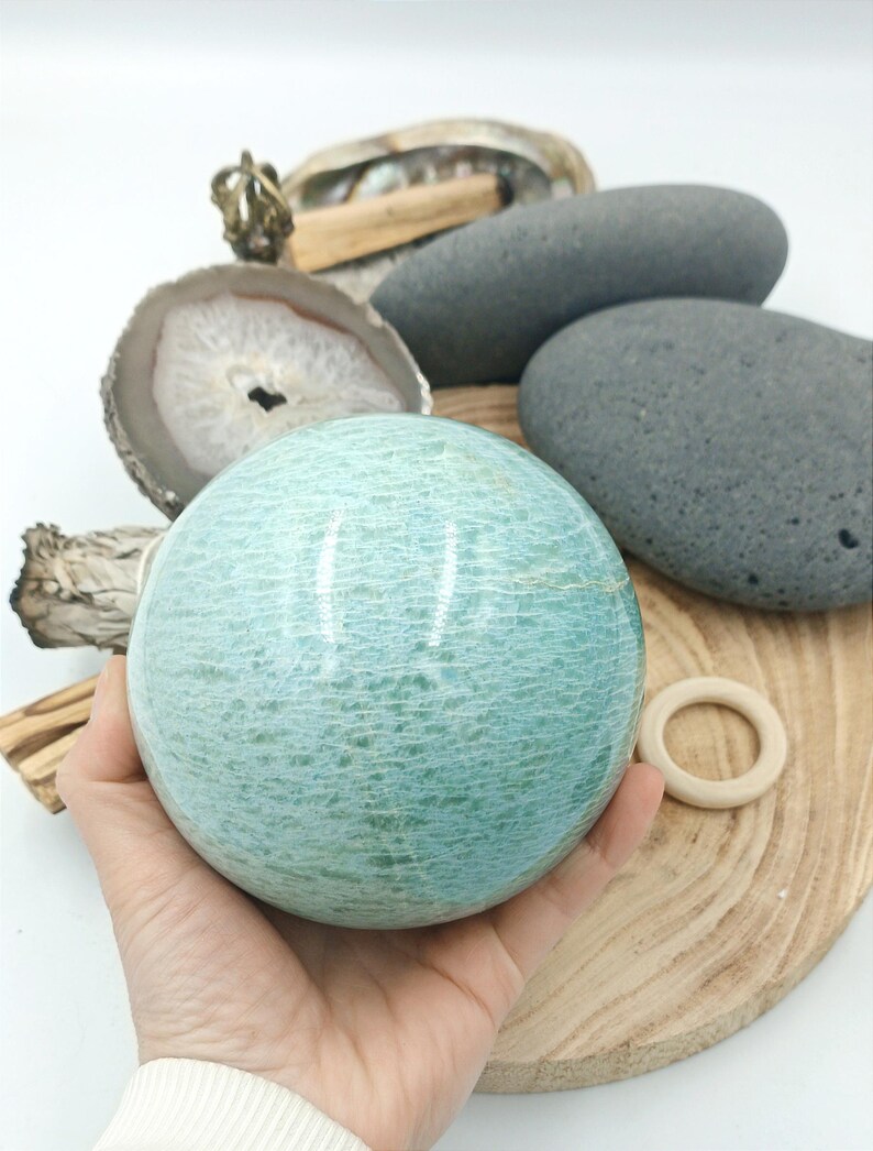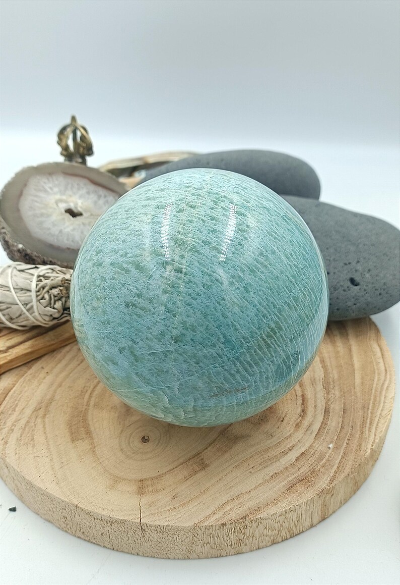 Matériaux : pierre naturelle, polie, amazonite, sphère
