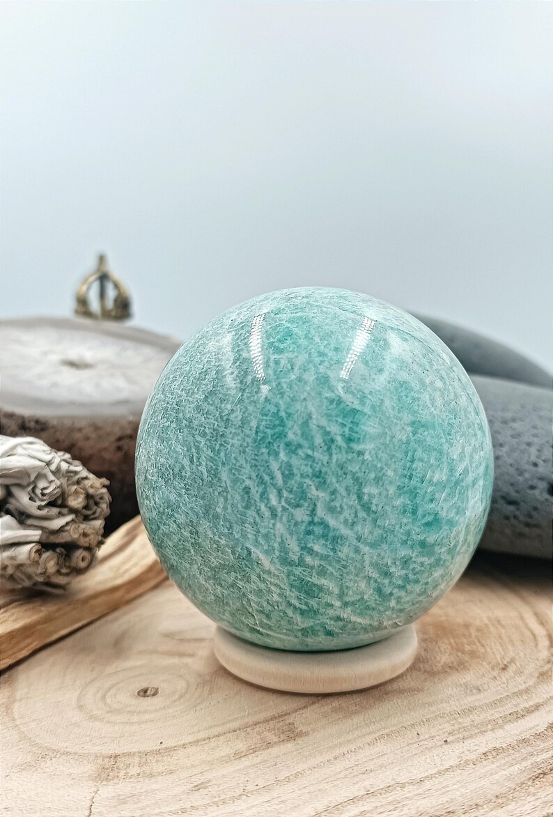 Matériaux : pierre naturelle, polie, amazonite, sphère